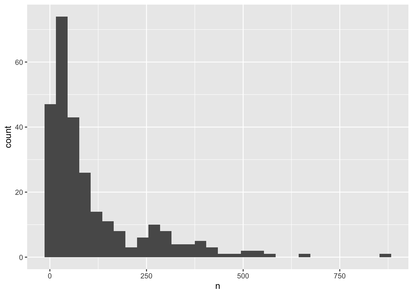 arrange(desc(n)) # Adding arrange just to compare with histogram# A tibble: 275 × 3