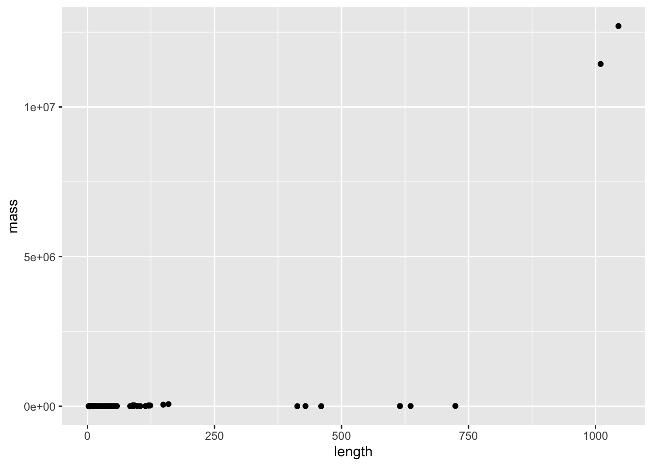 ggplot(aes(x = length, y = mass)) +