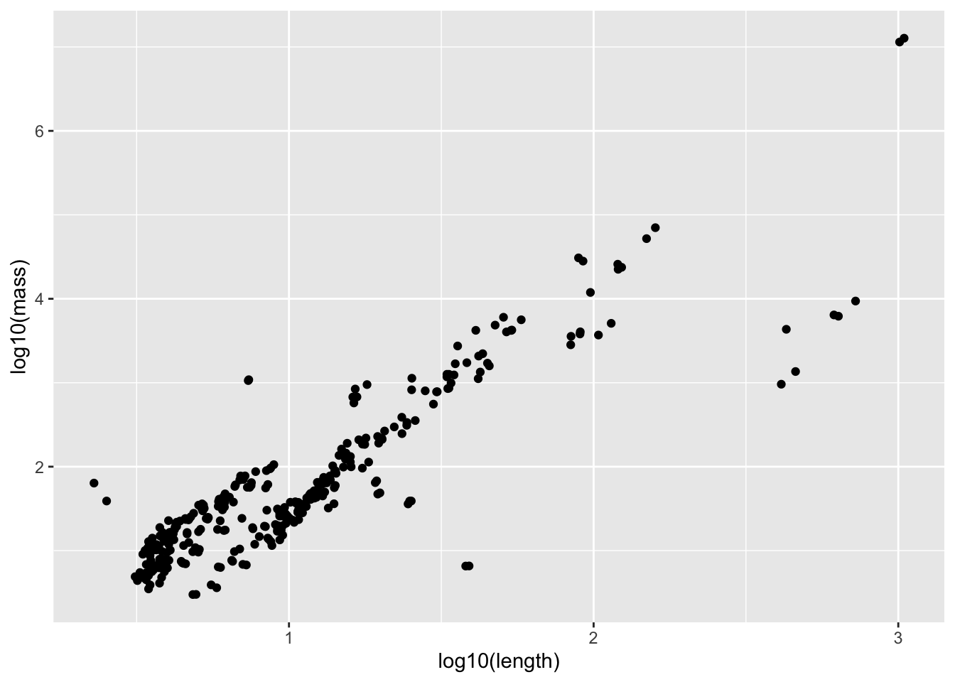 ggplot(aes(x = log10(length), y = log10(mass))) +