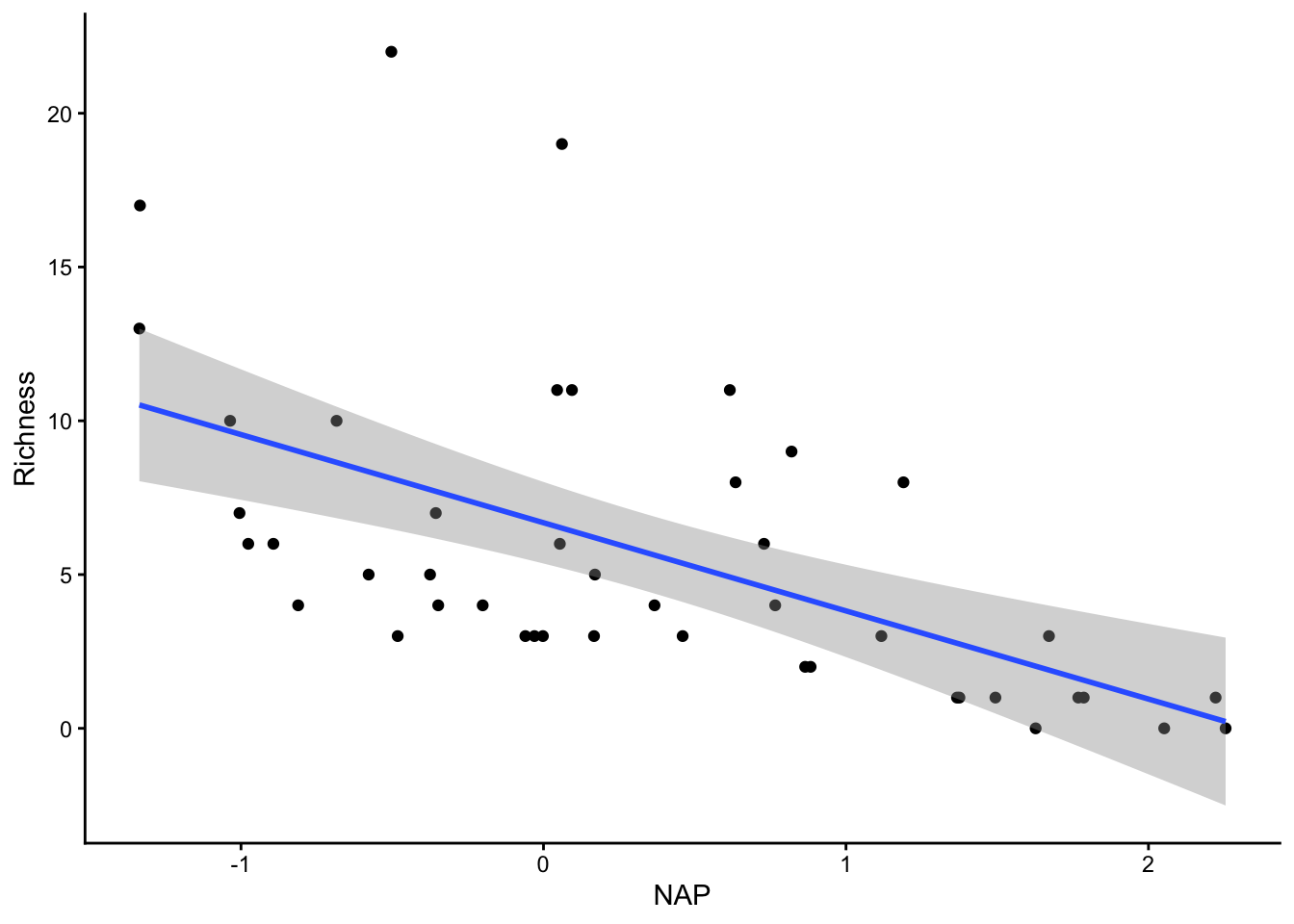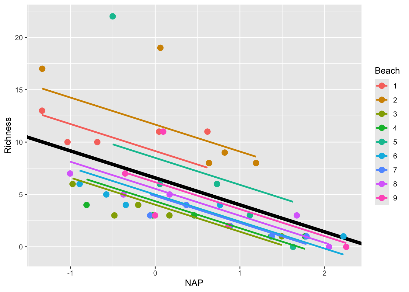 Formula: Richness ~ NAP + (1 + NAP | Beach)