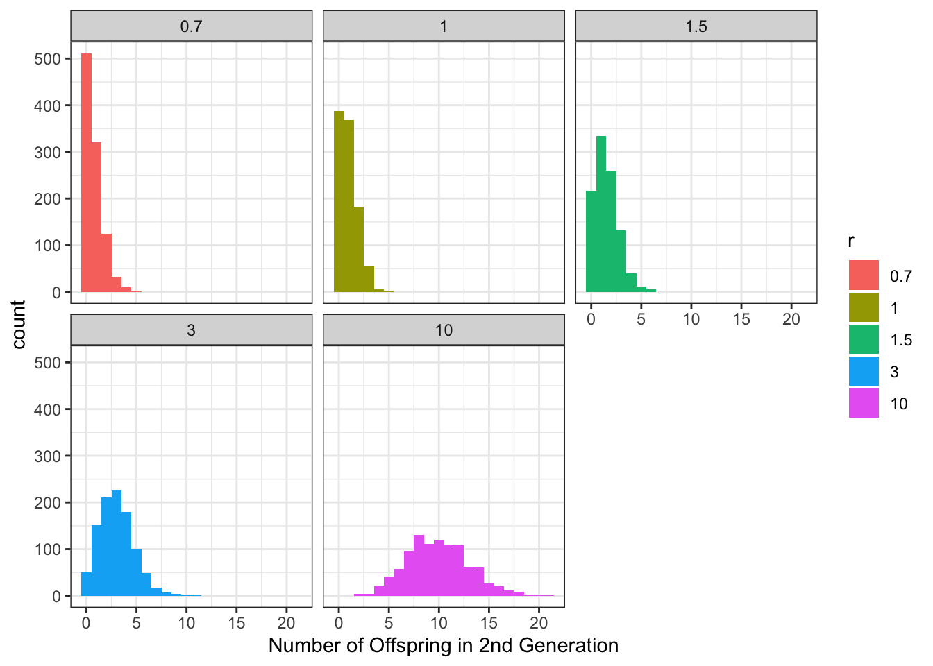 labs(x = "Number of Offspring in 2nd Generation", fill = "r")
